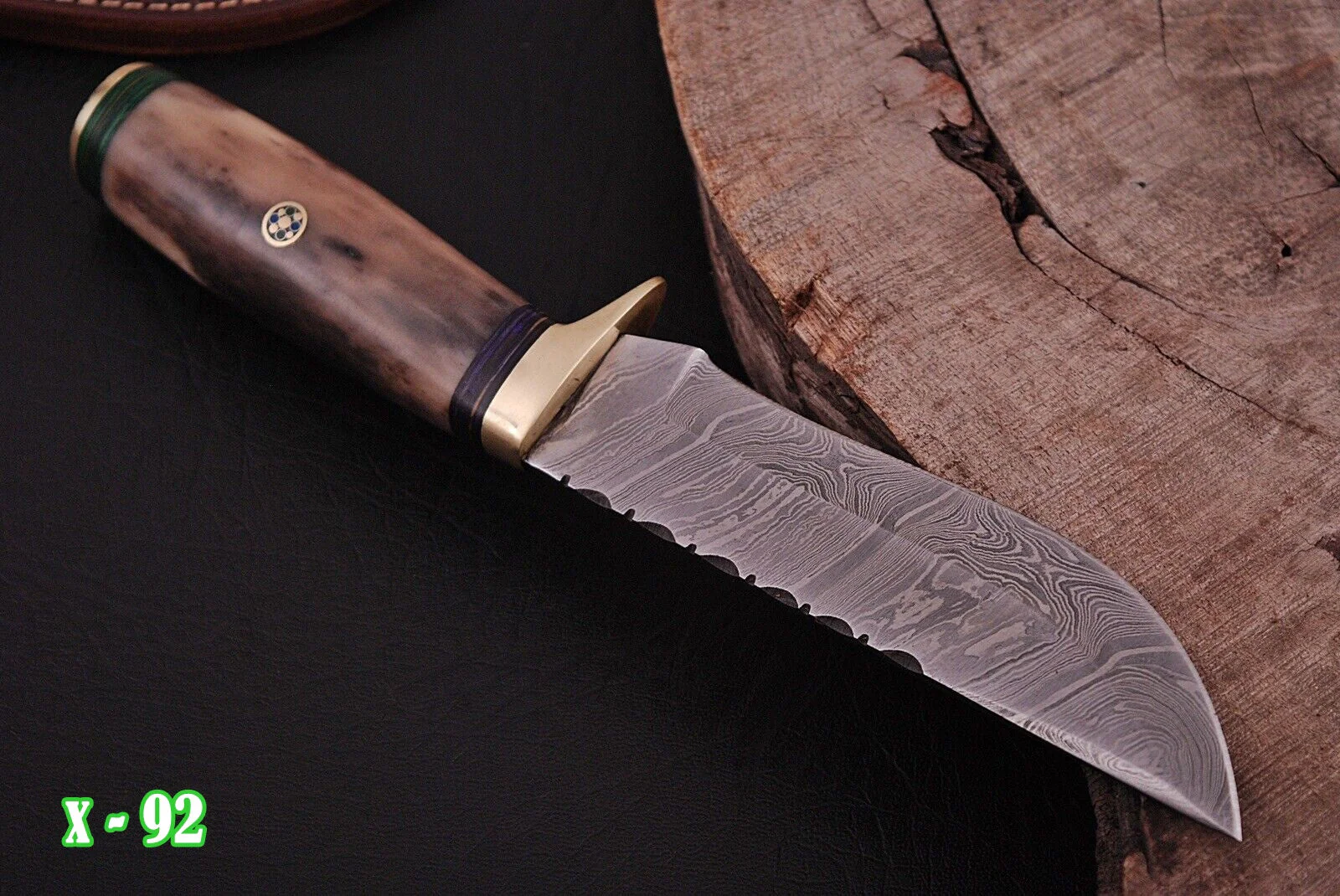 This superb design knifes is hand forged. Blade of this knife has a nice file work and is made of 512 layers of 4340 stainless steel and 1075 high carbon steel and hardness 55-58 H R C . The balance and shape of this knife ensures perfect grip.