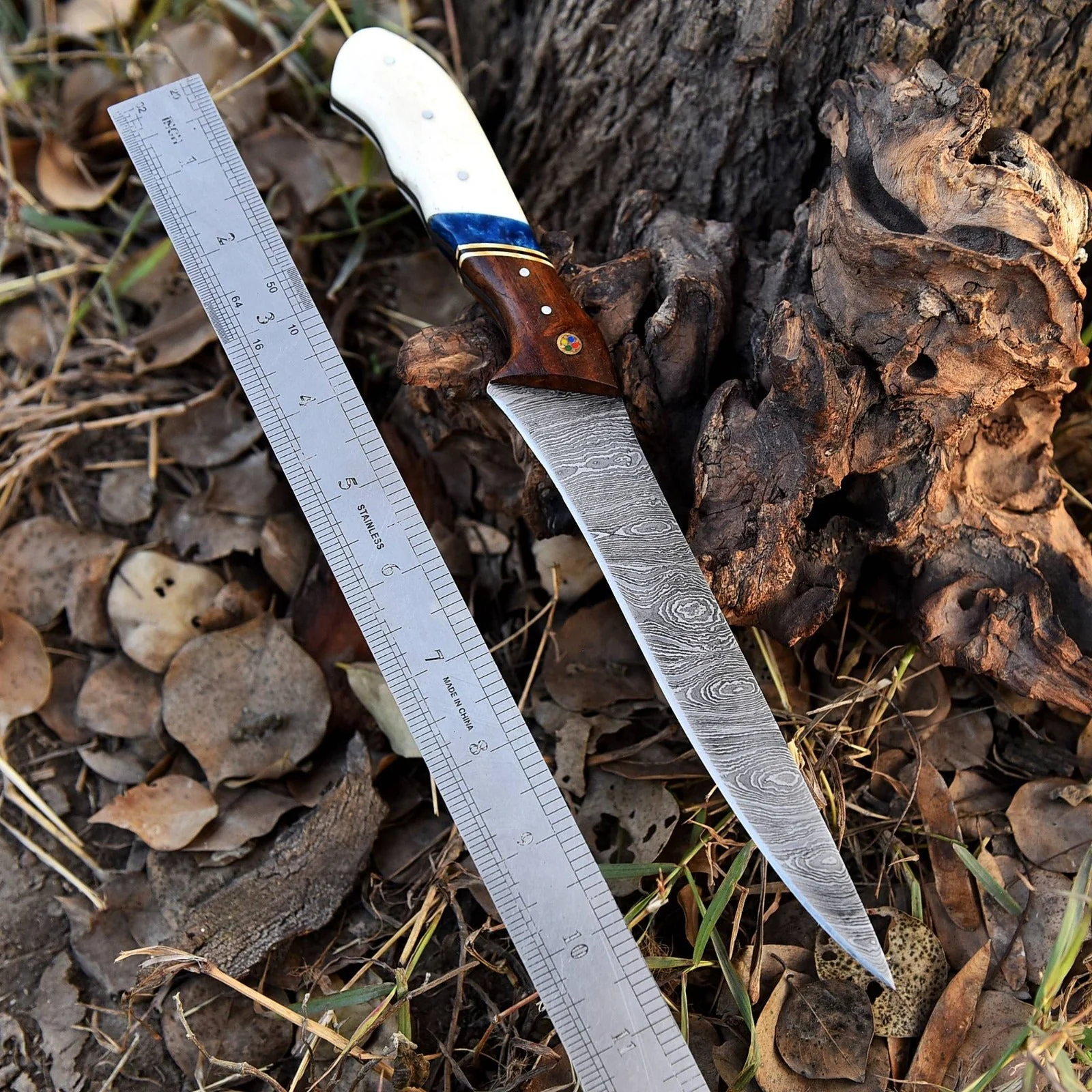 12" Handmade Fillet Damascus Chef Knife Bone wood & Resin Handle