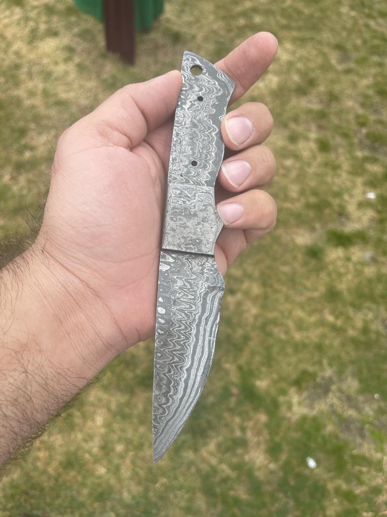 Handmade Damascus Ladder Pattern Steel Skinner Blank Blade Knife Full Tang x-12