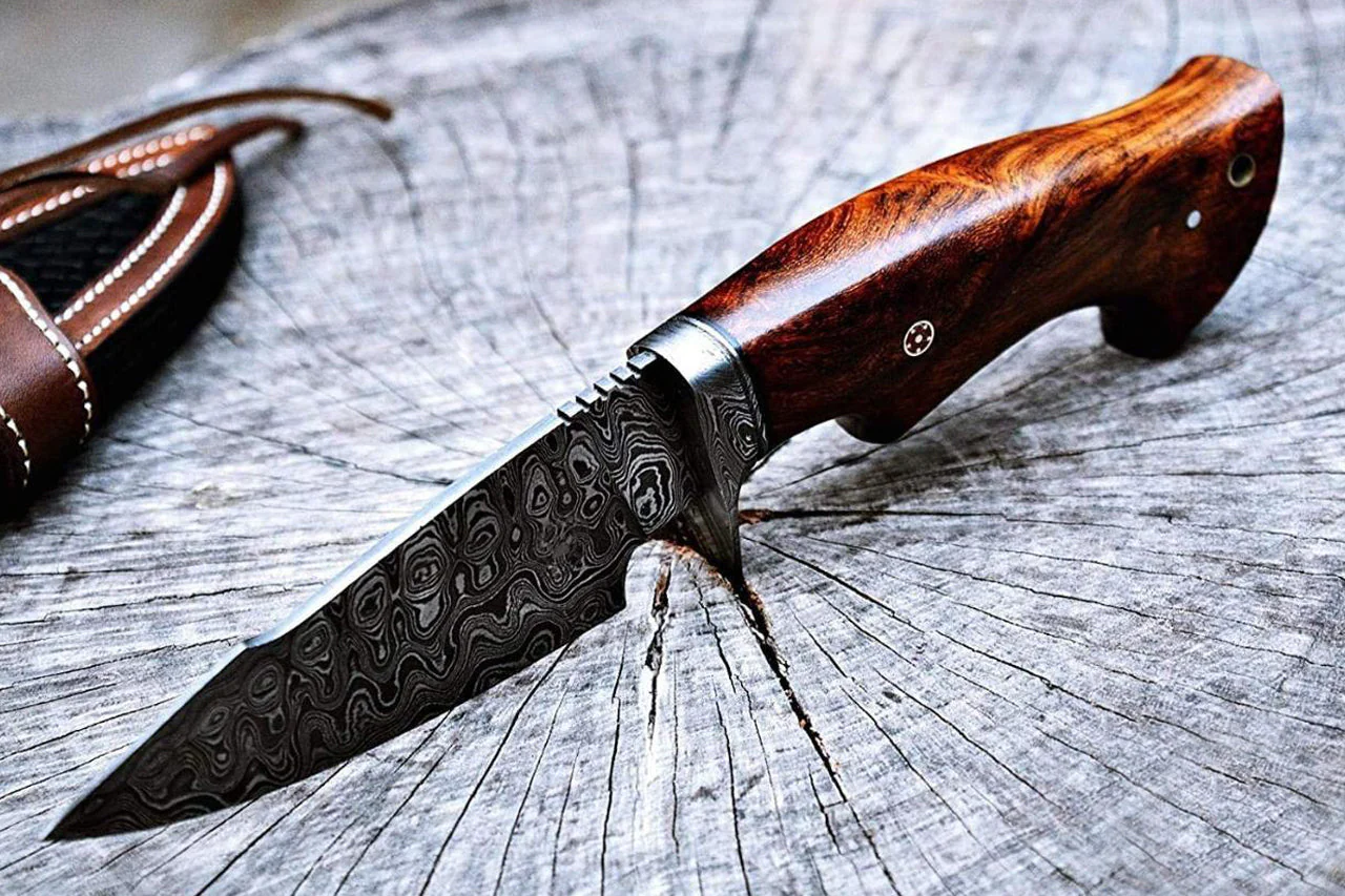 ROAR 10" Handmade Damascus Hunting Knife with Leather Sheath - Ideal Skinning Camping Outdoor EDC Fixed Blade Survival