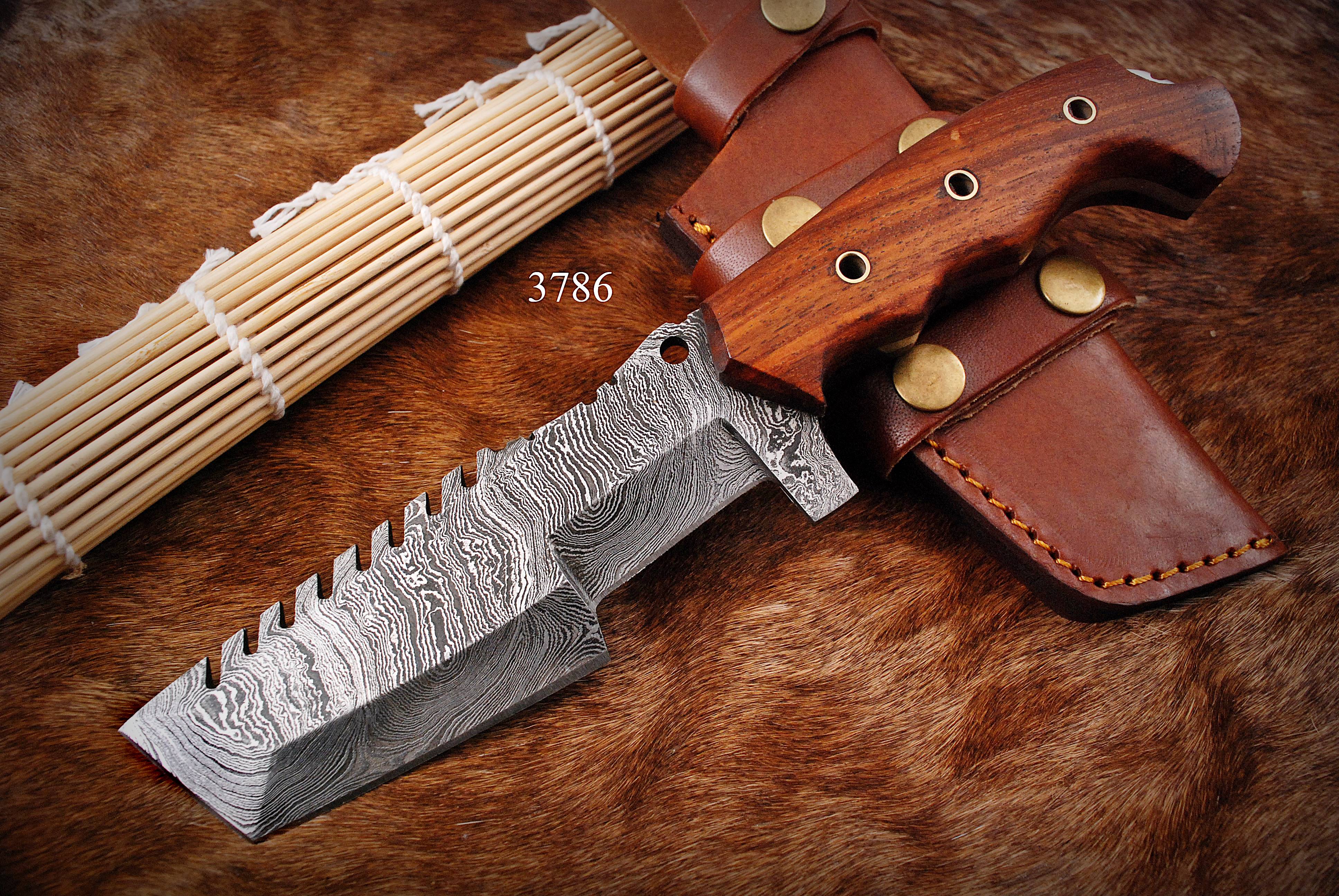 CUSTOM MADE HAND FORGED DAMASCUS STEEL TRACKER KNIFE WITH SCOUT SHEATH